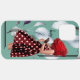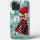 Dieses trendige Retro-Design mit floralen Collage iPhone-Gehäuse mit einer stilvollen Frau, die ein Polka-Dot-Kleid mit einer rote Rose als Kopf trägt. Blätter in Weiß, Silber und ein aquamariner Farbton bilden den Hintergrund, zusammen mit geometrischen Linien, die an zwei Seiten des Designs verlaufen. Der aquamarin/aqua Hintergrund fügt diesem lustigen Design einen Pop von Farbe und Kontrast hinzu. Eine Textvorlage ist enthalten, die Sie mit Wörtern, Ihrem Namen oder Monogramm oder beliebigen gewünschten Text personalisieren können.