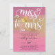 Laden Sie Ihre Familie und Freunde ein, um das Brautparty oder den Junggeselinnen-Abschied Ihrer Kleinsten mit diesen schicken, geistlichen Einladungen zu feiern. Design mit goldenem und rosa Hintergrund , MISS TO MRS. in trendigem handgeschriebenem Skript in weißer Farbe. Personalisieren Sie Ihre Daten in Blockschrift Hauptstadt. Für weitere Anpassungen klicken Sie bitte auf den Link "Weitere Anpassung" und verwenden Sie unser Design-Tool, um diese Vorlage zu ändern.