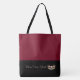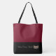 Diese niedliche, große Tasche wird in einem Crimson- und Black-Farbblock-Stil mit einer Seitenkrone und eigenem Text gezeigt. Passen Sie dieses Element an und ändern Sie den Text in Ihren Text.