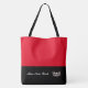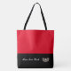 Diese niedliche, große Tasche ist in rot-schwarz Farbblock mit einer Seitenkrone und eigenem Text dargestellt. Passen Sie dieses Element an und ändern Sie den Text in Ihren Text.