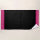 Dieses Badetuch wird in einem schwarzen Handtuch mit Enden in rosa Imitat Glitzer Farbe und einem koordinierenden massiven Streifen angezeigt. Passen Sie dieses Objekt an oder kaufen Sie es wie geplant.