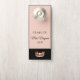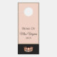 Dieser Türhänger ist zweiseitig und mit einer Pfirsichkrone unten gekrönt. Obere Kanten umgeben von einer Taupe-Grenze mit Beispieltext "Zuhause von Miss Virginia 2018". Vorder- und Rückseite sind sowohl pfirsichfarbene als auch schwarze Farben. Passen Sie dieses Objekt Ihren Wünschen an, mit welcher Farbe oder Phrase Sie möchten, oder kaufen Sie es wie geplant.
