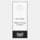 Dieser Türhänger ist zweiseitig und mit einer silbernen Krone ganz unten gekrönt. Obere Kanten, umgeben von einem silbergrauen Rahmen mit Beispieltext von "Knock Bitte pageant Training in Session". Passen Sie dieses Objekt Ihren Wünschen an, mit welcher Farbe oder Phrase Sie möchten, oder kaufen Sie es wie geplant.
