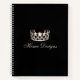 Dieses spiralförmige Rezept Notebook ist in schwarzem Schwarz mit einem Druck einer glänzenden Silber-Krone auf dem Cover und hat Graphen Papier innen. Unter der Krone ist das Beispielwort von "Zuhause Designs" in extravaganten Skripten gewartet, damit Sie Ihr Thema personalisieren können. Rückseite schwarz mit einer kleinen silbernen Krone ganz hinten. Sie können dieses Notebook anpassen und aus anderen Arten von Papier und Farbe der Bindung wählen, oder kaufen, wie gezeigt.