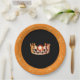 Diese festlichen Teller sind ideal, um Spaß zu haben (und sich auch leicht aufzuräumen), um sich auf der nächsten Seite zu treffen. Fügen Sie auf Wunsch Ihr Seitendesign oder Ihren Seitennamen hinzu. Hier sehen Sie einen orangen Rand und einen glänzenden Orangen Kronenprint in der Mitte über schicken schwarzen Hintergrund. Gold gefärbte Frills am Rand. Personalisieren oder kaufen Sie wie geplant. Sehen Sie auch die passenden 7" Teller!