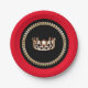 Diese festlichen Teller sind ideal, um Spaß zu haben (und sich auch leicht aufzuräumen), um sich auf der nächsten Seite zu treffen. Fügen Sie auf Wunsch Ihr Seitendesign oder Ihren Seitennamen hinzu. Hier sehen Sie einen hellen Roten Rand und einen glänzenden Goldkronenprint in der Mitte über schicken schwarzen Hintergrund. Goldene Regaltrimmen auf dem inneren Rand. Personalisieren oder kaufen Sie wie geplant.