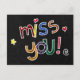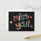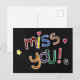 Eine großartige Postkarte im Retro-Stil mit Vermissen, die Sie auf schlichtem schwarzem Hintergrund geschrieben haben.