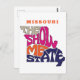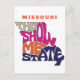 Der Staat von Missouris Spitzname: Der Staat "Show Me" in einer Silhouette in Form eines Staat zeigt Spaß und buntes typografisches Design mit einem Retro-Gefühl
