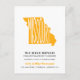 Teilen Sie Ihre neue Hausadresse mit Freunden und Familie mit schicken, sich bewegenden Ankündigungen oder Umsiedlungen, mit einer Silhouette des Staat von MISSOURI mit moderner Typografie. Benutzen Sie die Felder für Ihr benutzerdefiniertes Intro, Familienname und Ihre neue Adresse. . Fügen Sie auf der Rückseite eine personalisierte Meldung hinzu. MISSOURI SUNNY YELLOW ORANGE Map Farbe ist vollständig verändert!!