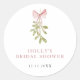 Feiern Sie die Braut mit diesem minimalistisch gestalteten Winteraufkleber mit einer atemberaubenden Aquarellabbilderin eines Mistelotes mit einem weichen staubigen Brautparty in Rose.