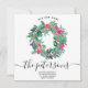Unsere neue Zuhause! Ein Winter mistletoe blumengeschmückte Weihnachtswasserkranz bewegende Ankündigung und eine elegante und moderne Skript-Kalligraphie Typografie auf bearbeitbarem weißen Hintergrund.