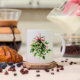 Artistic depiction of mistletoe tied with a delicate pink ribbon, perfect for the holiday season. The refined botanical design adds a touch of grace and romance to your favorite warm beverage.