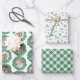 Mistleton-Set für die Umhüllung von Weihnachtsblättern mit drei passenden Mustern: eine mit Ihren Fotos in Misteldraht; einer mit grünen Mistelzweigen; und eines mit einem karierten grünen und weißen Muster.