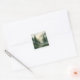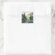 Misty morning in pine forest aesthetic quadratischer aufkleber