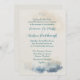 Wasserfarbene Wiesenlandschaft in romantisch aquamariner, aquamariner, getrocknetem Grasgold. Papiertextur in weißlicher Farbe auf der Vorderseite und umgekehrt. Ein natürliches, evokatives Aussehen von Wasser und Sumpfgras. Die Buchstaben sind aquamarin und umgekehrt staubblau. Hochzeiten an der Küste, Sommer oder moderne romantische Themen. Boho mit dekorativen Gräsern ist ein weiteres Thema, das harmonisch mit diesem Design wäre. Die Schriftart und die Farbe der Rückseite sind unterschiedlich.