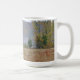 Diese Tasse bietet eine frühe Morgenlandschaft mit einer Wiese im Vordergrund und Nebel am Connecticut River. Foto aufgenommen im Haddam Meadows Staat Park.