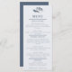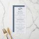 Elemente: Aquarellfarbenes Bergmotiv mit Bäumen und Schnee. Elegante Serif-Schriftart, die durch eine einfache, aber raffinierte Grenze ausgeglichen werden. Farben: blau, weiß, grau, schief, staubblau, schneeweiß, königsblau, Themes: einfach, elegant, modern, rustikal, Hochzeit im Freien, Hochzeit im Gebirge, einzigartig, Land, Apres Ski, Berghütte. Sammlung: Misty Mountain Blue Gray White Elegant Border Wedding Collection. Produkttyp: Menü