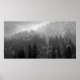 Transform your space with this striking black and white poster featuring a misty pine forest layered across a mountainous landscape. Soft fog drifts through the trees, creating depth, contrast, and a calm, atmospheric mood that draws the eye. The monochrome tones highlight the natural textures of the woodland, making this piece a timeless addition to both modern and classic interiors.