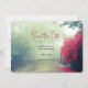 Save the Date Karte mit einem schönen Foto. Ein wunderschöner neblig Tag mit kurvenreichen Bahngleisen und schönem Laub und einem wunderschönen roten Baum. Ein sehr landschaftliches und launisches Bild.