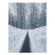 A foggy winter forest path with fresh snow and soft mist creates a tranquil Scandinavian-style landscape. A perfect image to enhance the coziness and comfort of your home, cottage, or interior.