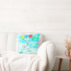 Cartoon Charakter mit Ballons über die Stadt fliegen. Digitales Bild.
