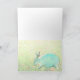 Mit Beileid (Kaninchenverlust): Eine sympathische Gehörkarte für einen Freund, der ein Kaninchen hatte, das ein weich geätztes Kaninchenbild zeigt und vorne den Text "Abschied von einem Freund" mit einem halbtransparenten Bild im Inneren.