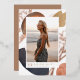Die einfache und moderne Ankündigung von Foto Abschluss verfügt über ein vertikales Foto auf einem Hintergrund von neutralen Aquarellformen und Erde Ton abstrakte Splotches mit Rose Goldfolie Akzente. Personalisieren Sie sich mit dem Namen, der Schule und dem Unterrichtsjahr Ihres Abschlusses. Fügen Sie der Rückseite eine persönliche Nachricht und ein zusätzliches Foto hinzu.