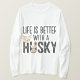 Zeigen Sie Ihre Liebe für Huskies mit diesem stilvollen und unterhaltsamen Design! Mit dem Zitat "Leben ist besser mit einem Husky" mit niedlichen Kunstwerken ist es das ideale Geschenk für Husky-Besitzer, Hundemütter, Hundedads und alle, die ihren furiosen besten Freund lieben. Ideal für lässige Kleidung, Geschenke und Liebhaber von Haustieren überall.