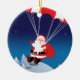 Eine niedliche digitale Sankt, die zu Boden mit einem roten und weißen Fallschirm schwimmt.