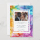 Mit der "Ethereal Bloom"-Karte rette man den Datumskarte, die ein lebendiges Kunstwerk mit einer faszinierenden Mischung aus reicher Blues, Purpur, Rot, Orangen und Grüntönen aus flüssiger Alkoholfarbe bietet. Ätherische, doppelbelichtete Lilien blühen anmutig an den Rändern und verleihen dem dynamischen Design eine elegante Touch. Auf der Vorderseite der Karte wird die Beschriftung "Save the Date" in raffiniertem Text angezeigt, gefolgt von den Namen der Paare, dem Hochzeitstag und der Lage, die alle elegant vor dem lebendigen, wirbelnden Hintergrund präsentiert werden. Auf der Rückseite der Karte setzt sich das Design mit einer weicheren Verlängerung der ätherischen Kunstwerke fort und bietet einen schönen Rahmen für die Anpassung. In der oberen Mitte befindet sich Platz für das Foto des Ehepaares, wodurch eine persönliche Touch hinzugefügt wird. Die untere Mitte bietet viel Raum für anpassbaren Text, wie zum Beispiel zusätzliche Details oder eine herzliche Nachricht. Erleben Sie die Eleganz des "Ethereal Bloom", mit dem sich die künstlerische Lebensfreude auf personalisierte Eleganz trifft und die Bühne für Ihre bevorstehende Hochzeitsfeier in einer unvergesslichen und stilvollen Art und Weise schafft.