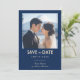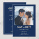 Die Einführung einer hoch entwickelten, senkrechten "Japonesque Harmony with Fuji" Save the Date Karte, die kulturelle Eleganz perfekt mit persönlichen Touchs in Einklang bringt. Stellen Sie sich vor, die Vorderseite der Karte mit einem ruhigen Set vor einem marineblauen Hintergrund. Oben fängt ein individualisierbares Foto des Paares einen wunderschönen Moment ein und fügt sich nahtlos in die friedliche Bildsprache ein. Unter dem Foto werden der individuell anpassbare Bildtext "Save the Date" und das Datum, an das man sich erinnern kann, elegant dargestellt, wodurch eine harmonische Mischung aus persönlichen und kulturellen Elementen entsteht. Die Rückseite zeigt einen massiven marineblau blauen Hintergrund, der die Karte umdreht und einen schlichten und einheitlichen Look verleiht. Hier können Sie alle wesentlichen Save the Date Informationen wie Namen, Veranstaltungsdetails und eine personalisierte Nachricht eintragen. Damit haben Ihre Gäste alles, was sie brauchen, in einer eleganten und einladenden Karte. Diese senkrechte Save the Date Karte ist eine perfekte Mischung aus personalisiertem Charme und kultureller Eleganz und lädt Ihre Gäste ein, gemeinsam mit Ihnen die Liebe unter dem berühmten Hintergrund des Fuji zu feiern, mit der modernen Drehung eines marineblauen Themas.