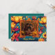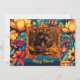 Diese "Blumenfreude-Diwali-Grußkarte" strotzt vor lebhaften Farben und faszinierenden Blumenmustern, die den festlichen Geist Diwalis verkörpern. Der Hintergrund ist dunkelblau und schafft einen kühnen Kontrast zu den hellen, lebhaften Blume, die die Karte schmücken. Große Blüten in Gelb-, Orange- und Rosatönen dominieren die Ecken, die Akzente setzen auf grüne und blaue Blätter und kleine, zarte Blumendetails. Die Blume wirken leuchtend, handbemalt und verleihen dem Design ein Gefühl von Wärme und Feier. Am Ende der Karte wird die Meldung "Happy Diwali" in einem goldenen, kursiven Schriftart angezeigt, wodurch eine raffinierte Touch entsteht, die sich vor dem dunklen Hintergrund abhebt. Die Rückseite der Karte ist solide grün und passt perfekt zu den üppigen Grüntönen im vorderen Design. Der benutzerdefinierbare Text ist Set in einem weißen Schriftart, der einen scharfen Kontrast zur einfachen Lesbarkeit bietet. Diese Karte erfasst das Wesen von Diwali mit seinen hellen Farben, aufwändigen Details und einer schönen Balance aus Festlichkeit und Tradition.