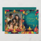 Diese "Radiant Turquoise Diwali Grußkarte" zeichnet sich durch ein lebendiges und festliches Design aus, das sich perfekt für Diwali eignet. Der Hintergrund ist eine atemberaubende Mischung aus türkisfarbenem Wasser, mit leuchtenden Akzenten, die die Farbenpracht der gesamten Anlage ergänzen. Um das individuelle Foto herum sind lebendige, farbenfrohe Dekorationen von Blätter, Blume und Laternen. Die Blätter sind in aquamarinen, blauen und grünen Farbtönen gehalten, während die Blume von hellen Rosa und Orangen bis hin zu dezenten Gelbtönen reichen. Diese Elemente sind wunderschön an den Seiten der Karte angeordnet und sorgen für eine lebendige und festliche Touch. Oben im Rahmen befindet sich ein goldenes Dekorationselement, das eine traditionelle, elegante Touch mit zarteren goldenen Details am Ende der Karte hinzufügt. Rechts vom benutzerdefinierten Foto wird der Text "Happy Diwali" in einem fließenden goldenen Schriftsatz geschrieben, begleitet von der personalisierten Botschaft "von Kapoor Family" in einem kleineren goldenen Schriftart. Darunter befindet sich eine schön beleuchtete Diya (Öllampe), umgeben von komplexen Blumenmustern, die die Wärme und das Licht von Diwali unterstreichen. Die Rückseite der Karte ist kräftig türkisblau, passend zu den kräftigen Farben der Vorderseite. Es enthält anpassbaren Text in weißem Schriftart, der einen auffallenden Kontrast bietet und die Nachricht leicht lesbar macht. Diese Karte strahlt eine festliche und fröhliche Atmosphäre aus, mit einer perfekten Mischung von traditionellen und modernen Elementen.