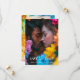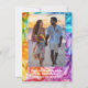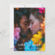 Die Einführung der "Ethereal Bloom" rett-the-date-Karte, wo atemberaubende persönliche Touchs auf künstlerische Eleganz treffen. Auf der Vorderseite der Karte befindet sich ein ganzseitiges Foto des Ehepaares, das einen wertvollen Augenblick in lebhaften Details einfängt. Im unteren Teil wird die Beschriftung "Save the Date" elegant dargestellt, gefolgt von den Namen der Paare und dem Datum der Zeremonie, sodass alle wesentlichen Informationen klar und schön in das Design integriert sind. Auf der Rückseite ist ein zweites Foto des Ehepaares zu sehen, Set vor dem Hintergrund des bezaubernden "Ethereal Bloom"-Kunstwerks, das anmutig Wirbel in reichen Tönen von Blues, Purpel, Rot, Orangen und Grüntönen. Unter dem Foto gibt es genügend Platz für personalisierten Text, um zusätzliche Details oder eine herzliche Nachricht zu erhalten. Das Kunstwerk verbessert den Hintergrund und schafft einen zusammenhängenden und stilvollen Rahmen, der die Bilder des Paares ergänzt. Erleben Sie den Charme des "Ethereal Bloom", der "rett-the-date"-Karte, in der persönliche Fotos und lebendige Kunstwerke zu einem unvergesslichen Set für Ihre Hochzeitsfeier zusammenkommen.