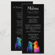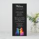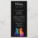 Dieses strahlende Hochzeitsmenü aus der Purkur Yours: Eine Rainbow Liebe Story Kollektion spiegelt den Stolz und die Leidenschaft der wahren Liebe wider. Am unteren Rand mit zwei in Regenbogenfarbe gehaltenen Katzen, die sich süß anschauen, zelebriert es LGBTQ+ Freude mit einem kühlen, zarten Geist. Die Vorderseite zeigt die Speisenauswahl in einem sauberen, modernen Schriftart vor einem schwarzen Hintergrund, der den lebhaften Akzenten ein Glanz verleiht. Von Vorspeisen bis hin zu Desserts, jeder Gang ist elegant und elegant gepflegt, was jeden Ort zu einem visuellen Genuss macht. Auf der anderen Seite erwartet Sie ein herzliches Gedicht - vollständig anpassbar - das Ihnen einen Einblick in Ihre Liebe bietet. Ob romantisch, spielerisch oder poetisch, dieser spezielle Vers verwandelt das Menü in einen Sake. Dieses Menü, das von oben bis Schwanz individuell gestaltet werden kann, ist eine perfekte Möglichkeit, um Ihre Feier mit Farbe, Charme und felinem Flair zu würdigen.