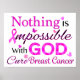 Einzigartig und schön Brustkrebs Zitat von "Nichts ist mit GOD unmöglich. Heilung von Brustkrebs" für Überlebende von Brustkrebs und Kämpfer, die an Gott glauben.