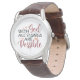 Pass auf ihn auf, großartig als Geschenk für einen Pastor, "Mit Gott sind alle Dinge möglich" auf dem Gesicht der Uhr, Brown Leather Band. Geburtstag, Vatertag