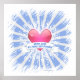 Mit Gott ist alles möglich! Glauben und haben Vertrauen, Gott ist immer bei uns. Farbenfrohe blaue Postersonnen mit glänzendem Herz.