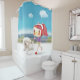Mit Hund am Meer laufen Duschvorhang