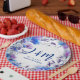 Ein bezauberndes Teller aus der Kollektion Blue Cornflowers und Lavender Bliss mit einem quadratischen Rahmen, der mit hübschen Kornblumen und duftenden Lavendel-Blume geschmückt ist. In der Mitte werden die Initialen des Paares sowie das Datum und der Ort der Hochzeit elegant dargestellt. Dieses künstlerische Arrangement erfasst das Wesen der natürlichen Schönheit und Personalisierung und macht jedes Paper Plate zu einer einzigartigen und visuell atemberaubenden Ergänzung Ihrer Hochzeitsfeier. Der komplexe Blumenrahmen dient als zeitloser Sake und symbolisiert die Liebe, die an Ihrem besonderen Tag geteilt wird