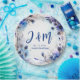 Die Ausstellung präsentiert eine faszinierende Papierplatte aus der Kollektion Blauer Kornblumen und Lavender Bliss. Sie besticht durch einen quadratischen Rahmen, der mit wunderschönen Maisblumen und Lavendel-Blume gestaltet wurde. In der Mitte dieses bezaubernden Rahmens werden die Initialen des Paares, das Datum der Hochzeit und seine Lage elegant dargestellt. Dieses künstlerische Arrangement schafft eine harmonische Mischung aus Naturschönheit und personalisierten Details, die jedes Papier-Platten zu einer einzigartigen und optisch atemberaubenden Ergänzung zu Ihrer Hochzeitsfeier macht. Der faszinierende Blumenrahmen dient als charmanter Sake, der das Wesen Ihrer Liebe mit jedem Detail festlegt.