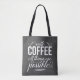 Genießen Sie den Tag mit einer Tasse Kaffee und dieser niedlichen, Vintagen Typografie-Totentasche. Design zeigt das Zitat "Mit Kaffee alles ist möglich" in weißer Schrift, auf einem gebürstetem grauem Chalkboard Hintergrund.