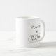 Auf dieser trendigen minimalistischen Tasse ist der Begriff "powered by coffee"