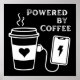 Das Design der Wandkunst "Powered by Coffee" zeigt eine spielerische Darstellung eines in eine Kaffeetasse eingesteckten Ladegeräts, das den Energieschub symbolisiert, den nur Kaffee bieten kann. Ideal für Kaffeeliebhaber, die von Koffein profitieren!
