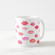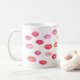 Smooch! Als Geschenk für Schönheitsliebhaber, Schminkkünstler, Lippenproduktvertriebe oder Kunden bietet unsere Sealed With a Kiss Tasse ein Aquarellkissenmuster in kräftigen Mohnrot-, Korallen- und Rosatönen.