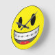 Das ikonische Gesicht, mit kieferorthopädischen Spangen aktualisiert.