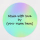Maßgeschneiderte Aufkleber/Etiketten zum Hinzufügen zu Kunsthandwerk, Backwaren und anderen Geschenken und Produkten! Diese verfügen über einen schönen und farbenfrohen Farbverlauf in 3 verschiedenen Konfigurationen. Fügen Sie Ihren eigenen Text hinzu! Erstellt mit Liebe von einem freien Künstler in Washington Staat, USA. Danke, dass du unabhängige Künstler unterstützt hast.