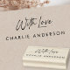 Gummi Briefmarke mit dem Text "mit Liebe" in einem eleganten Skript-Schriftart mit Ihrem individuelle Name unten.