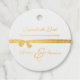 Sehr schöne Gastgeschenk Hochzeit-Tags in Goldblatt auf Weiß mit dem Foto des Paares auf der Rückseite. Ein Band und ihre Namen auf der Vorderseite zusammen mit einer anpassbaren Nachricht von Infused with Liebe und wir sind so dankbar, dass Sie uns heute beigetreten sind.
