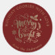 hausgemachte, gut gebackene Aufkleber mit Imitate goldene Folienskripte in whimsical Schriftart "Merry and Bright" mit dekorativen Wirbel und Ihre Info umkreist auf zwei Töne Hintergrund Samt schwarz und rot